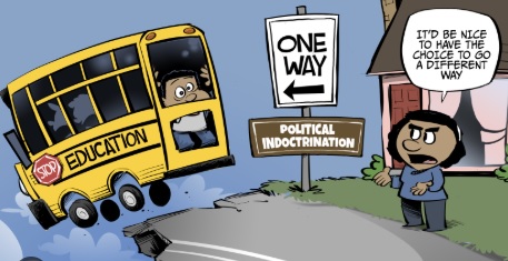 “The far-left brainwashing unfolds for seven hours a day over 13 formative years. Just as American children step off this factorylike conveyor belt, they become eligible to vote, and they are primed to buy into the socialist lies they have been sold.”