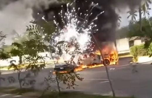 In reprisal, the CJNG cartel launched hundreds of attacks in 20 states, blocking roads with burning vehicles and setting stores and banks on fire.