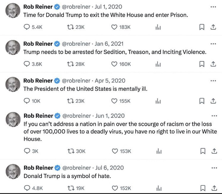 Meanwhile, Rob Reiner’s legacy of contempt for President Donald Trump was circulating on social media.