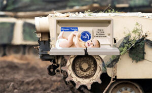 [In the new progressive U.S. military], a new feature has been added to the next line of M1 Abrams tanks: a diaper changing table.