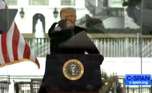 Jan. 6, 12 to 1:15 p.m.: President Trump Delivers Powerful Speech: At the Ellipse, President Trump speaks to hundreds of thousands of supporters, detailing evidence of election fraud and urging the crowd to march to the Capitol to “peacefully and patriotically make their voices heard.” He stresses the need to fight for the country through strength and determination, explicitly calling for peaceful protest. The crowd responds with massive enthusiasm.