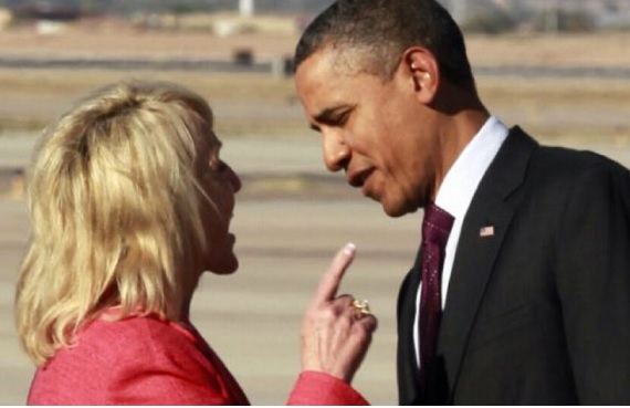That’s where the infamous photo at left comes into play. It shows then-Arizona Republican Gov. Jan Brewer, Revolver News noted, “wagging her finger in Obama’s face. The two were locked in a heated dispute over immigration enforcement, and Barry ultimately shut the state down.”